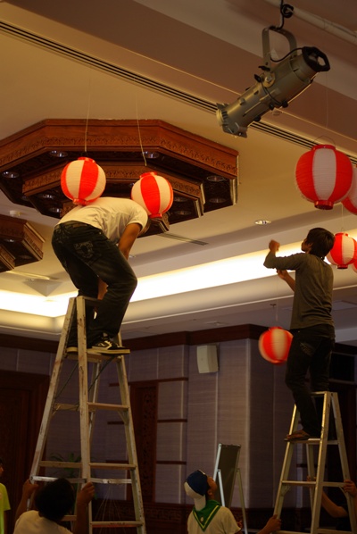 川上には巨大な灯篭が立ち並び、近くでは屋台が無数に並んでいる。王宮周辺の広場では、舞台が組まれ、多数の有名な歌手が歌っていた。