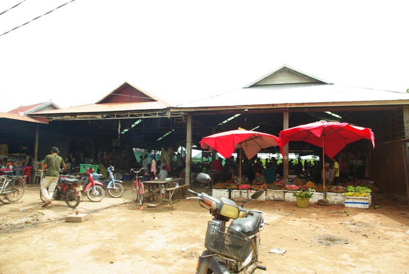 山の周りを回るように、交差点を左に折れ、50mも進むと市場へと到着する。