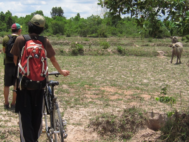 その周囲に堀があるのだが、雨季がはじまったばかりの今は、堀の途中に水が無いところがあり、歩いて渡る事ができた。