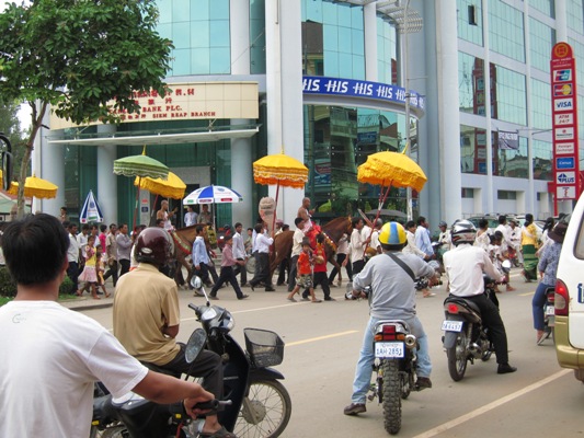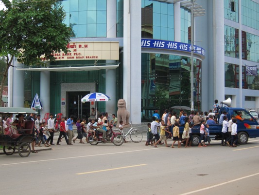 街の喧騒を離れ、繁華街の方よりシェムリアップ川を渡る。