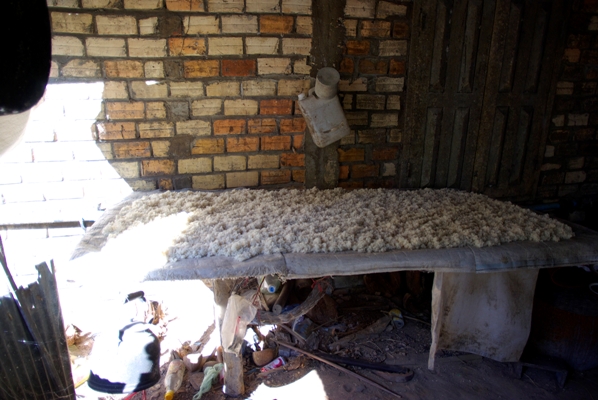 一度炊き上げた米をこうして日陰で2日間乾燥させる。
