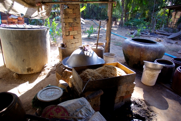 「スラ・ソー」は米焼酎なので、米農家の多いカンボジアでは至る所で造られている。