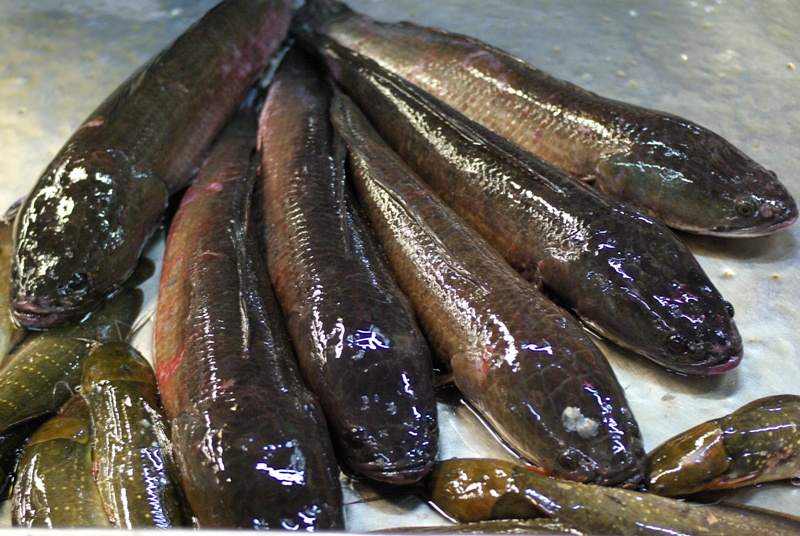 市場に行くと雷魚、ナマズ、ドジョウ、ウナギ、フナ等、日本でも馴染みのある魚も数多くいる。よく見ると上鰓器官を備えた魚が多い。