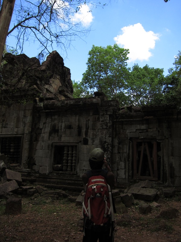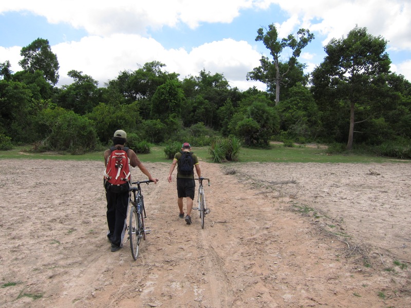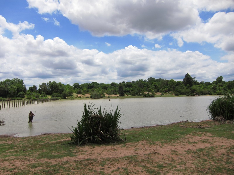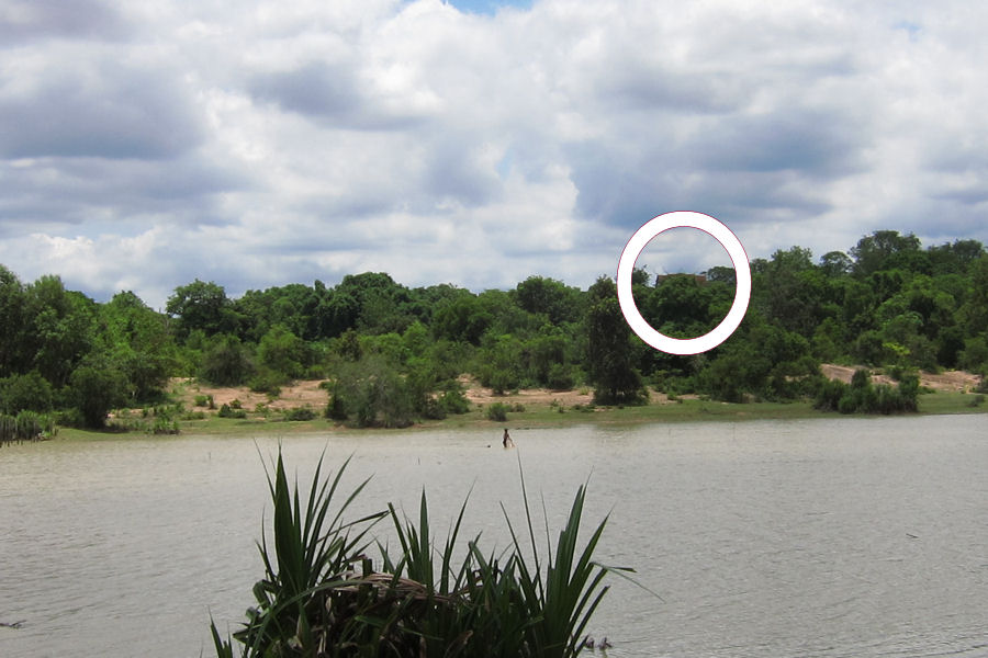 その周囲に堀があるのだが、雨季がはじまったばかりの今は、堀の途中に水が無いところがあり、歩いて渡る事ができた。