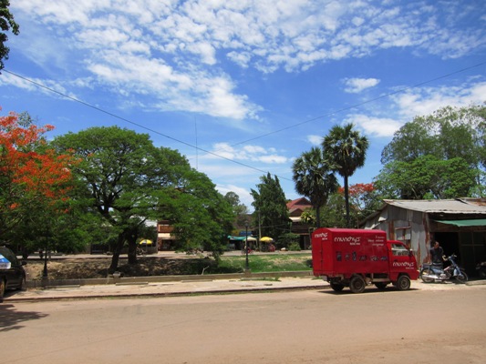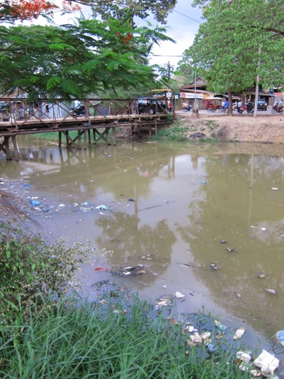 街の喧騒を離れ、繁華街の方よりシェムリアップ川を渡る。