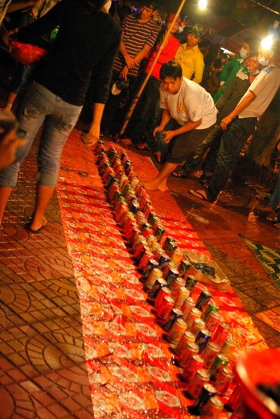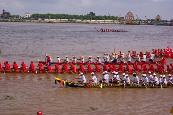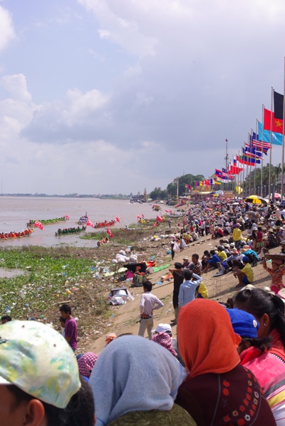 ここシェムリアップではシェムリアップ川沿いに屋台が並び、川の上ではボートレースが行われる。