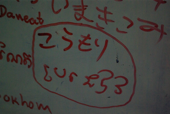 勉強したいから平仮名でこれの名前を書いてくださいというので、道場のホワイトボードに書き込んだ。